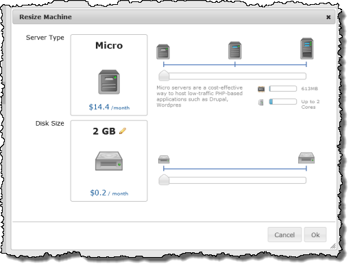 You can easily move your applications to a larger or smaller EC2 instance or adjust the amount of disk space that they available (Erica told me that they’ll allow server resizing to be schedule-driven in the near future, giving you the ability to run a large server during the day and a small one at night):