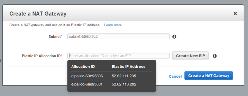 To learn more, read about the VPC NAT Gateway in the VPC User Guide.