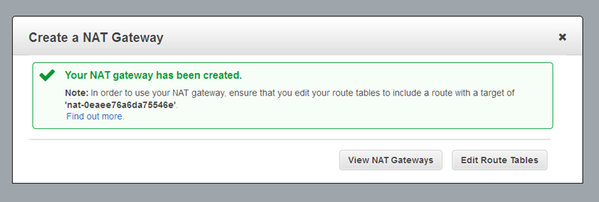 Then click on Create a NAT Gateway, and observe the confirmation: