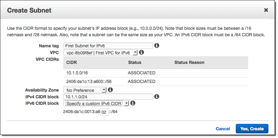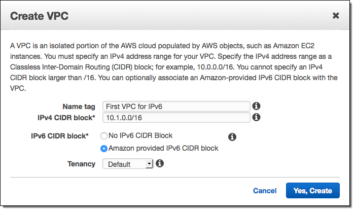 Earlier this year we launched IPv6 support for S3 (including Transfer Acceleration), CloudFront, WAF, and Route 53. Today we are taking the next big step forward with the launch of IPv6 support for Virtual Private Cloud (VPC) and EC2 instances running in a VPC. This support is launching today in the US East (Ohio) Region and is in the works for the others.