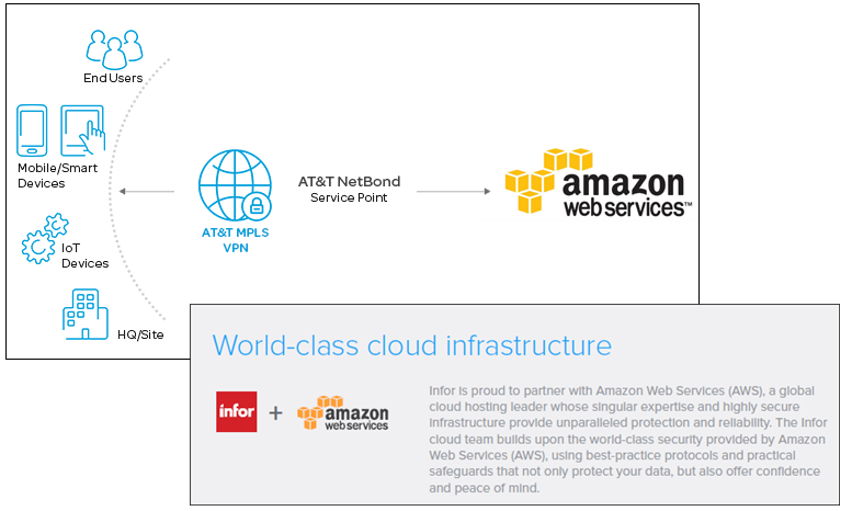 SaaS Architecture enhanced by AT&T NetBond – Enhances quality and user experience for applications migrated to the AWS Cloud: