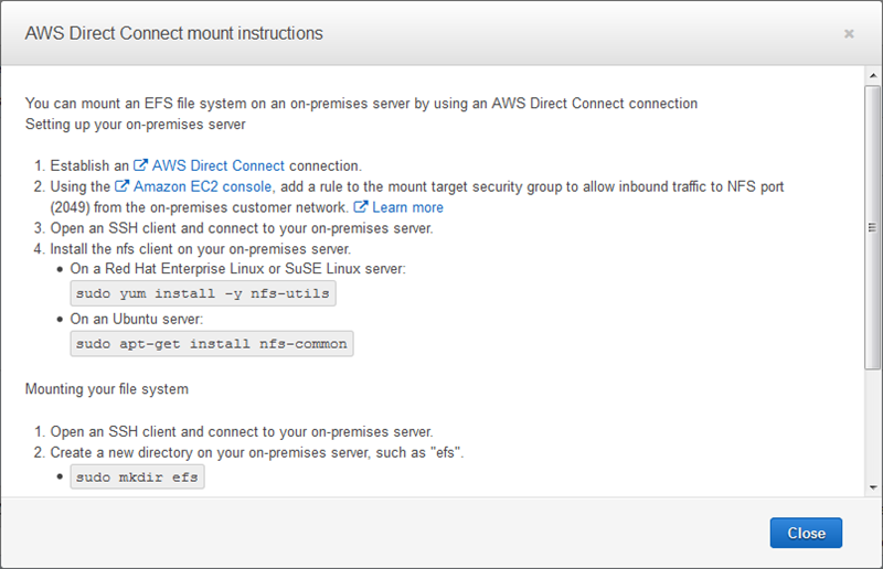 Amazon EFS Update – On-Premises Access via Direct Connect