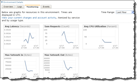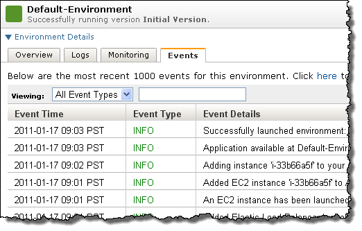 As you can see from the screen shots above, the Elastic Beanstalk tab of the AWS Management Console gives you a lot of information, control, and power. For more information, please see the Elastic Beanstalk User Guide.