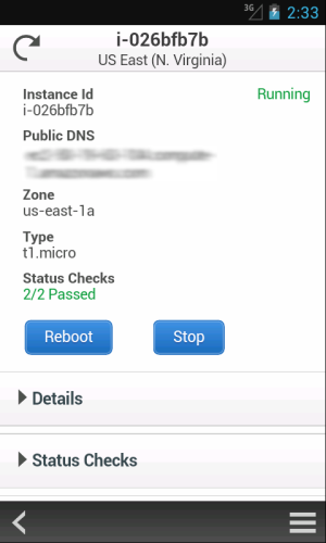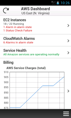 This new app provides mobile-relevant tasks that are a good companion to the full web experience including the ability to quickly and easily view and manage your existing EC2 instances and CloudWatch alarms from your Android phone. You can view your total AWS service charges and switch between AWS accounts and regions from within the app. As with the web-based management console, sign-in is as simple as entering your AWS or IAM credentials.