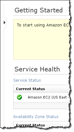 - View a summary of your EC2 instances, CloudWatch alarms, total service charges, and the AWS Service Health status, with optional filtering on the instances and alarms.