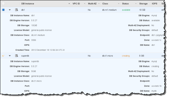 We learned that many Console users spent a lot of time alternately selecting one of a pair of AWS resources in order to compare and contrast certain settings. This wasn’t a good use of your time, so we added inline resource summaries to give you quick access to key resource attributes.