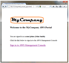 User browses to an internal site and clicks on Sign in to AWS Management Console.