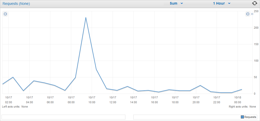 The first three metrics are absolute values and make the most sense when you view the Sum statistic. For example, here is the hourly request rate for my distribution: