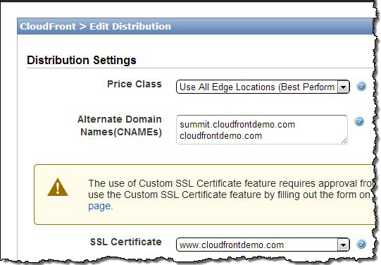 I am happy to announce that Amazon CloudFront now supports a pair of frequently requested features: support for custom SSL certificates and the ability to point the root of your website to a CloudFront distribution. With support for both of these features in place, it is now even easier for you to deliver your entire website via CloudFronts global network of edge locations. This includes the dynamic content, static objects, and the secured portions of your website or application.