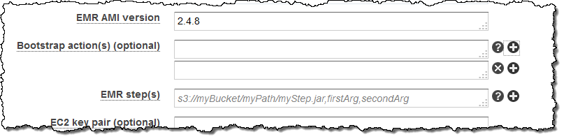 I chose Run an Elastic MapReduce job flow. Now all I need to do is to fill in the parameters for the job flow: