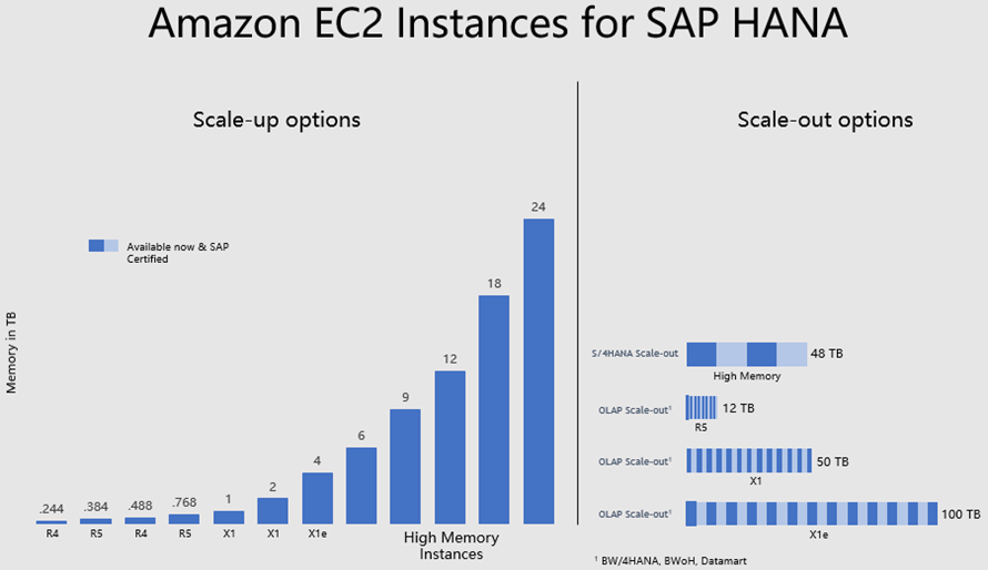 Here’s an overview of the scale-up and scale-out options that are possible when using these new instances to run SAP HANA: