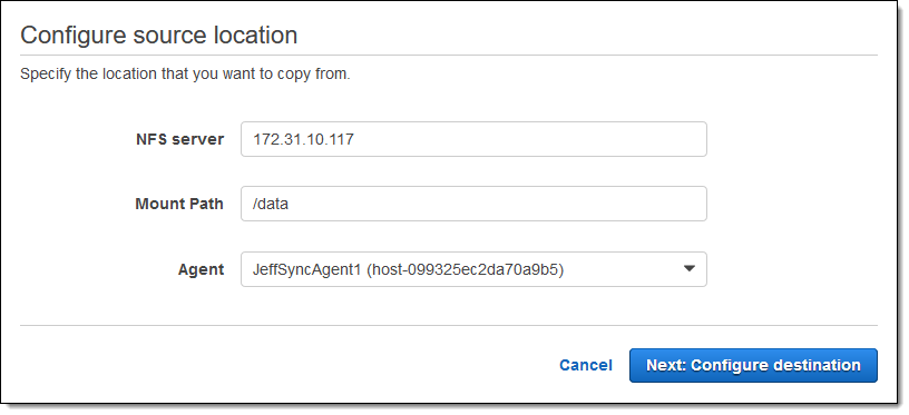 I configure the source location (the EC2 instance that I mentioned at the start of this section):