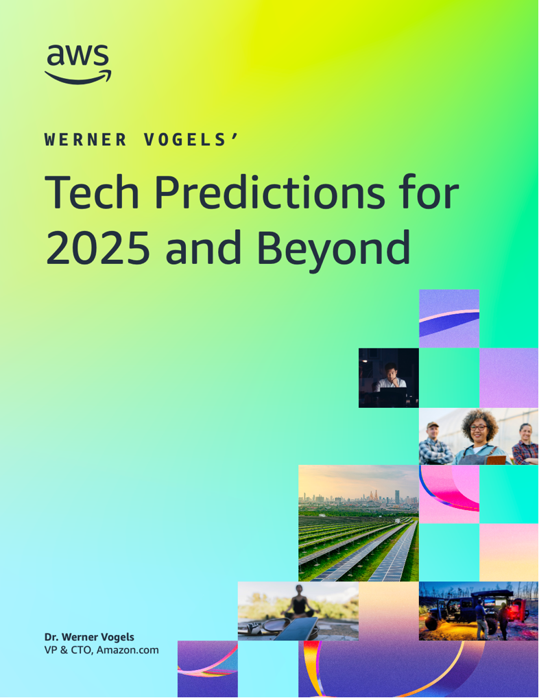 Download the Werner Vogels’ Tech Predictions for 2025 and Beyond ebook, or read Werner’s All Things Distributed blog to learn more about how these technological trends are shaping our world and paving the way for a more innovative, efficient, and purposeful future.