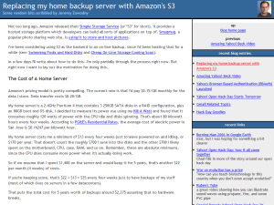 Jeremy Zawody has “done the math” and has decided to replace his home backup server with Amazon S3. Jeremy computed the cost of his hardware and his power and also took the “hassle factor” into account. All things considered, S3 came out ahead.