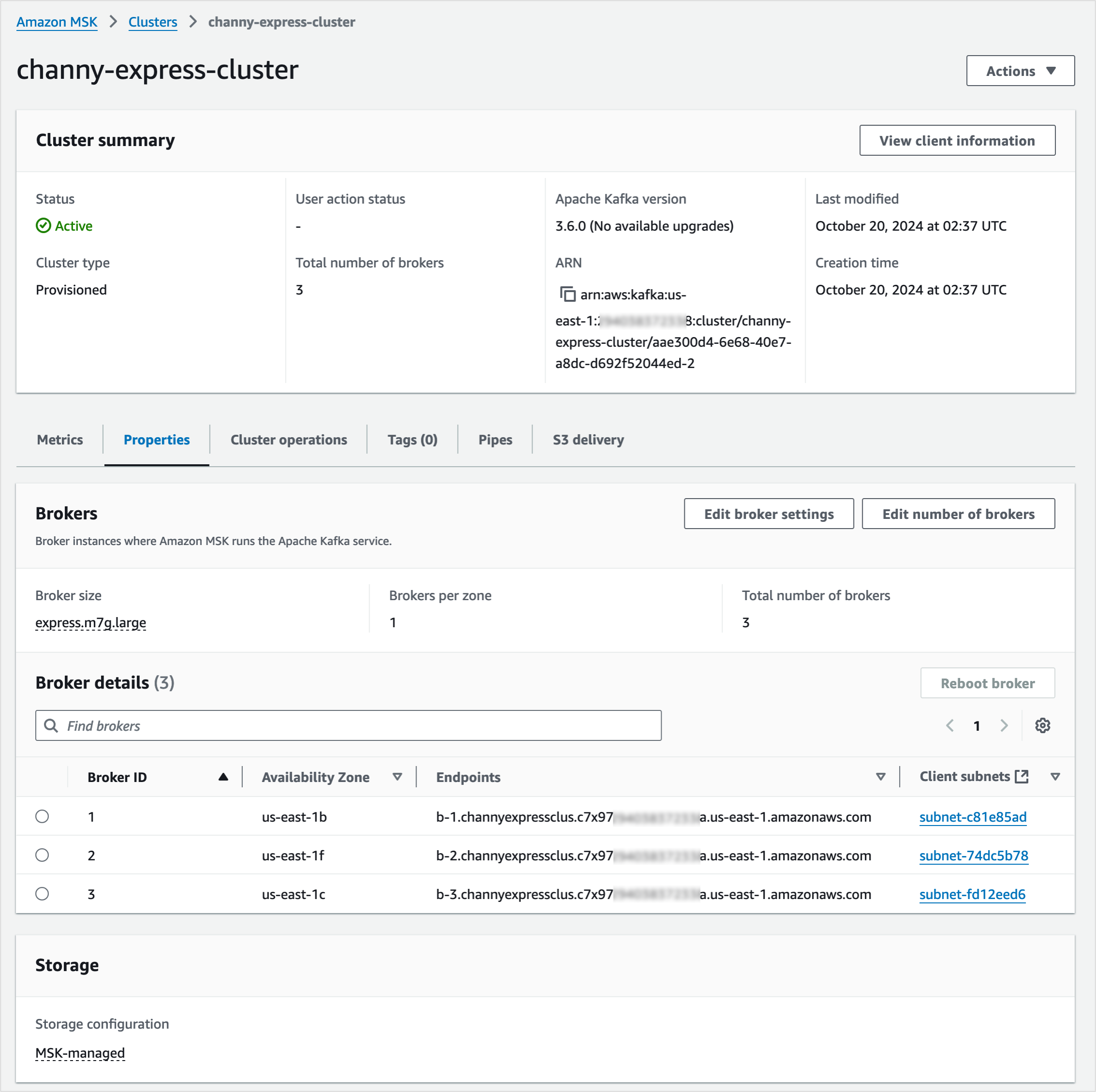 You can also customize some of these configurations to further fine-tune the performance of your clusters according to your own preferences. To learn more, visit Express broker configurations in the Amazon MSK developer guide.
