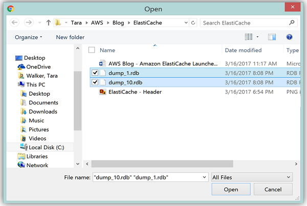 With my .rdb files successfully uploaded into my aws-blog-tew-posts bucket, I need to take note of the S3 path to these backup files. For these files, the path would be aws-blog-tew-posts/dump_1.rdb or aws-blog-tew-posts/dump_10.rdb. If you have placed your files into a folder, the folder name would need to be included in this path, i.e. thebucketname/thefoldername/thefilename.
