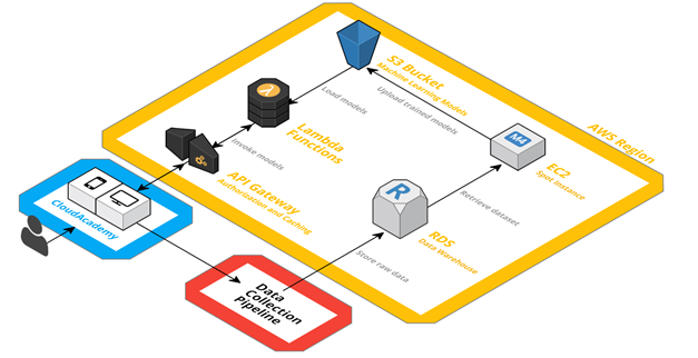 Behind the scenes, and without any impact on scalability or availability, an EC2 instance takes care of periodically updating these S3 objects, as outcome of the offline training phase.