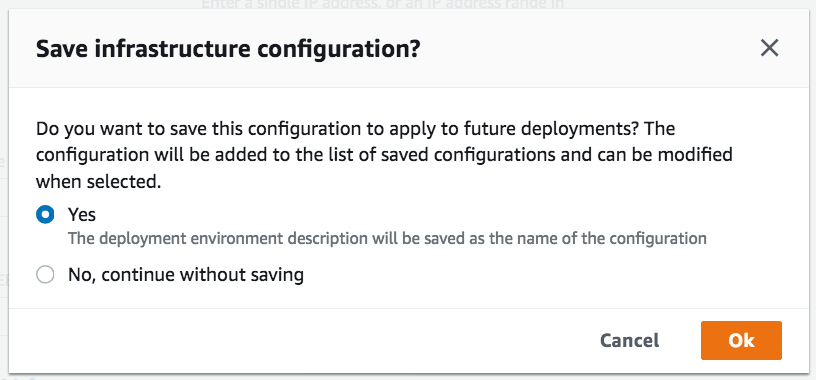 If you save infrastructure configurations, you can reuse to apply to future deployments.