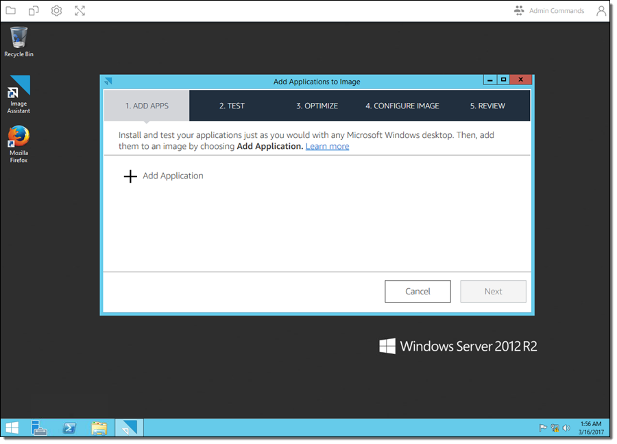 This feature allows you to create custom images that contain your choice of commercial or proprietary applications. In order to do this, you launch an instance called an image builder. Then you log in to the instance, install and configure the applications as desired, and capture the state of the instance as an image. The entire login and customization process takes place within your web browser; you don’t have to download any keys or remember any passwords. The application appears in the Image Registry and is available to your users.