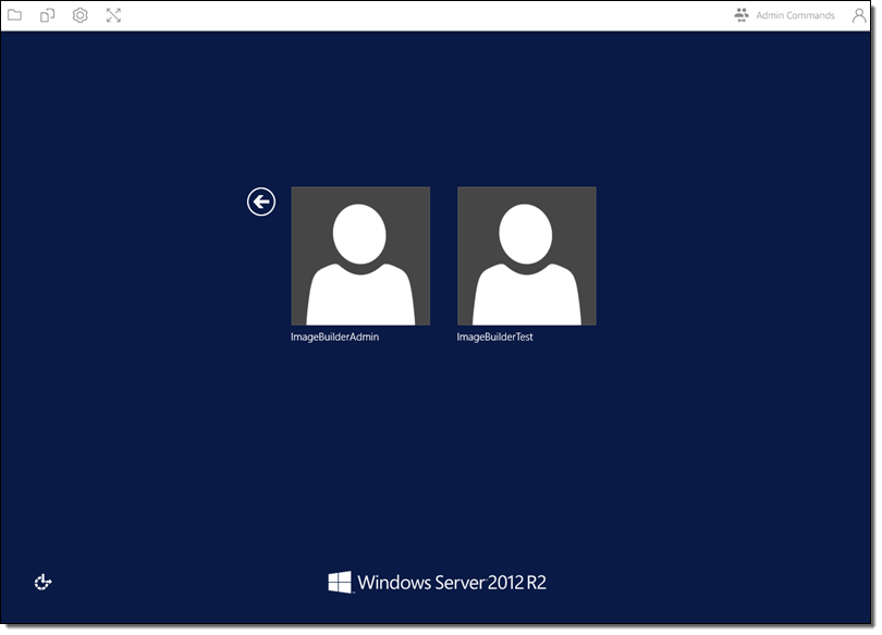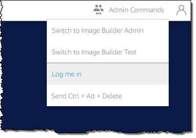 I select ImageBuildAdmin and (when prompted for a password), click on Log me in in the Admin Commands menu: