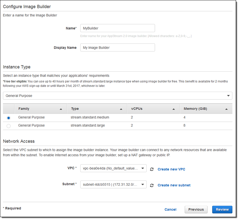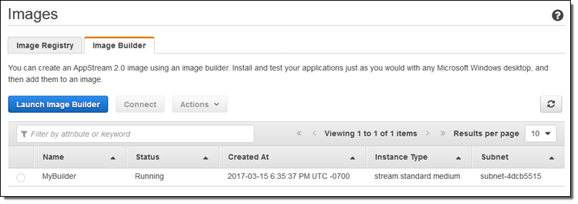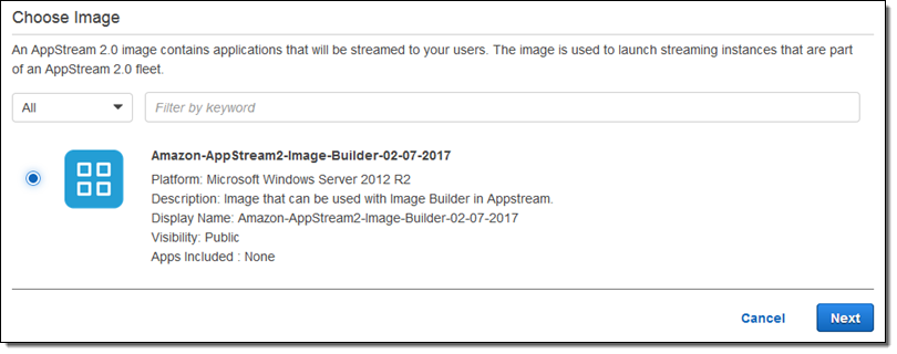 Image Builder – You can build your own AppStream 2.0 images that contain your choice of applications.