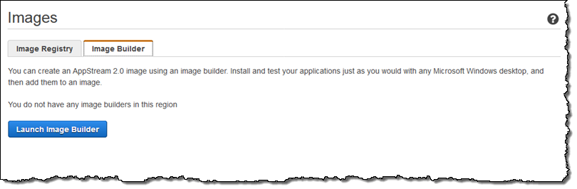 I can launch an image builder from the AppStream 2.0 Console: