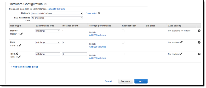 To learn more about Auto Scaling, read about Scaling Cluster Resources in the EMR Management Guide.