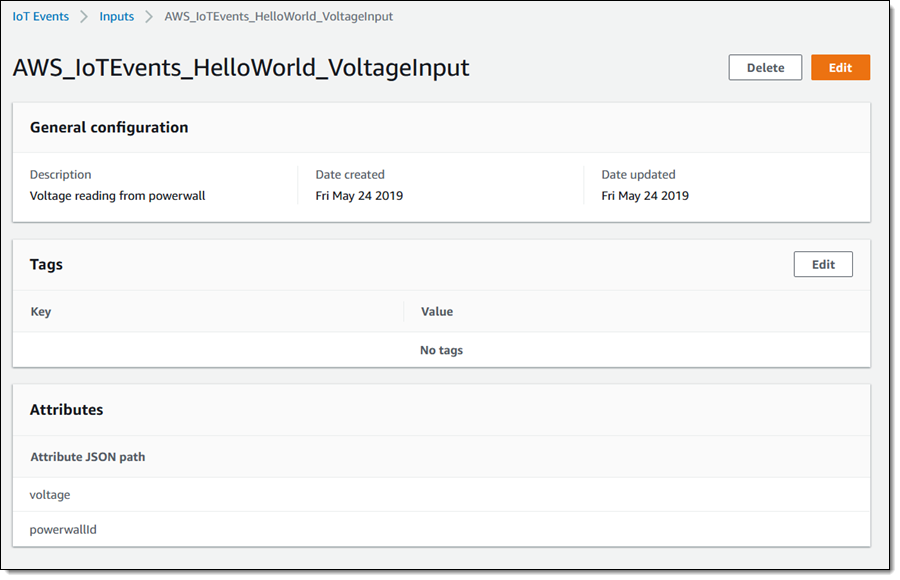 I can see all of my inputs at a glance; I click on the newly created input to learn more: