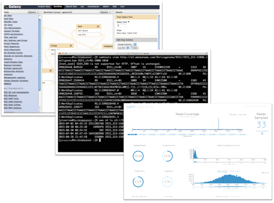 In addition to the rich set of AWS partner offerings for life sciences, the full genomics open source ecosystem is available for use with the data. From command line applications such as samtools to rich user interfaces such as Galaxy or iobio, researchers can get started right away to analyze the data.