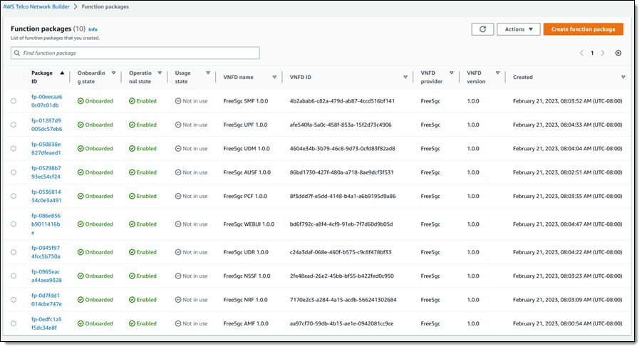 I repeat this process for the nine remaining CSARs, and all ten function packages are ready to use: