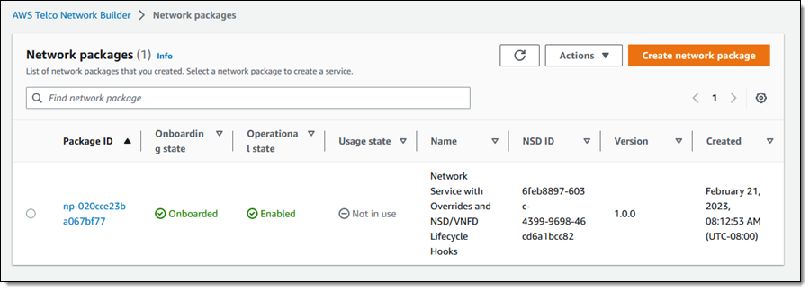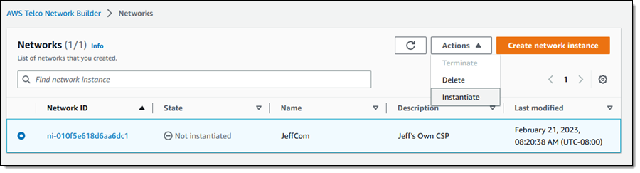Now I am ready to create my network instance! I select the network package and choose Create network instance from the Actions menu: