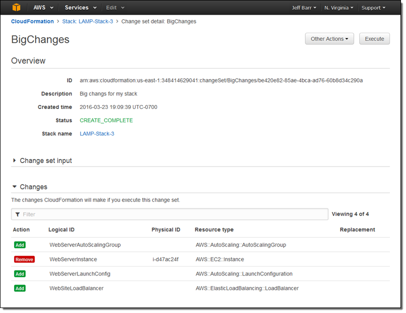 And there you have it! As I mentioned earlier, I can create and inspect multiple change sets before choosing the one that I would like to execute. When I do this, the other change sets are no longer meaningful and are discarded.