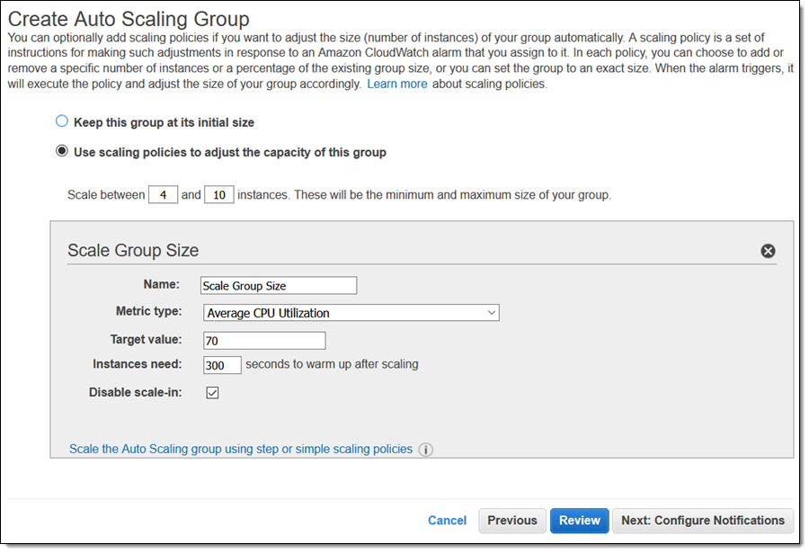 I disable scale-in for demo purposes (you don’t need to do this for your group):
