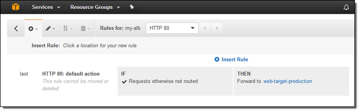 I already have a default rule that forwards all requests to my web-target-production target: