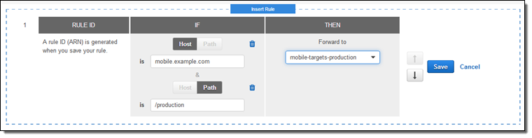 I add two rules for host-based routing and the editor now looks like this: