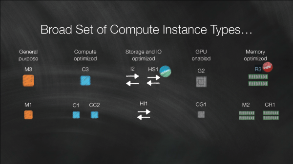 At last week’s AWS Summit in San Francisco, Senior VP Andy Jassy announced the forthcoming R3 instance type (watch Andy’s presentation), and presented a map to illustrate the choices: