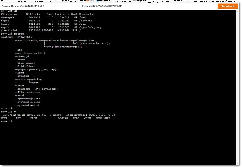 Programming and Scripting – In addition to the console access that I will show you in a moment, you can also initiate sessions from the command line (aws ssm ...) or via the Session Manager APIs.