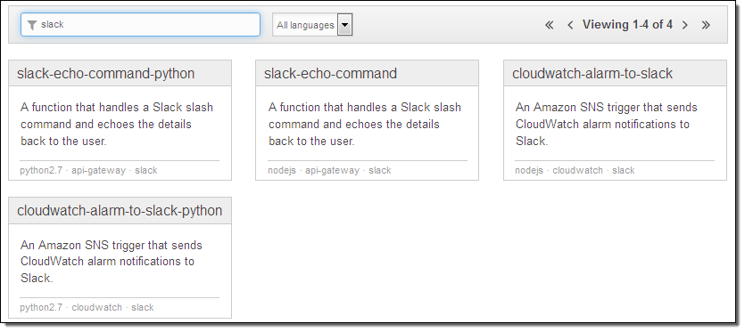 In order to make it even easier for AWS customers to manage their environments in this new and innovative way, we recently launched a collection of Slack Integration Blueprints for AWS Lambda: