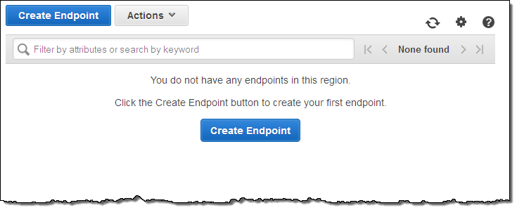 You can create and configure VPC Endpoints using the AWS Management Console, AWS Command Line Interface (AWS CLI), AWS Tools for Windows PowerShell, and the VPC API. Let’s create one using the console! Start by opening up the VPC Dashboard and selecting the desired region. Locate the Endpoints item in the navigation bar and click on it: