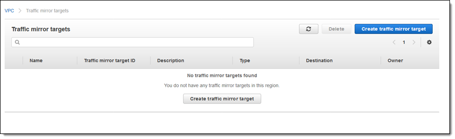 I click Create traffic mirror target: