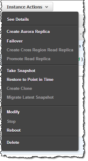 You can also set failover behavior, the retention period for snapshot backups, and choose to enable collection of detailed (OS-level) metrics via Enhanced Monitoring: