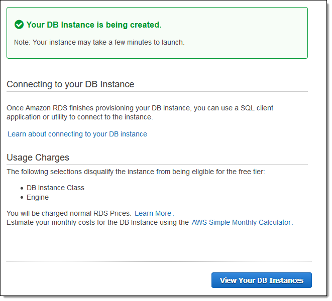 After you have set it up to your liking, click on Launch DB Instance to proceed!