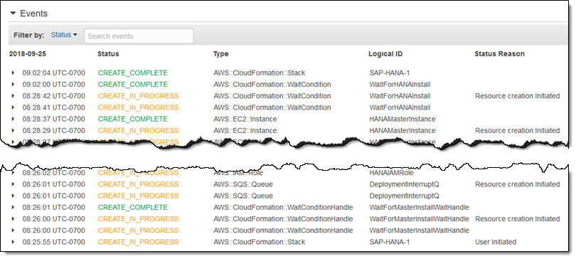 The AWS resources are created and SAP HANA is installed, all in less than 40 minutes: