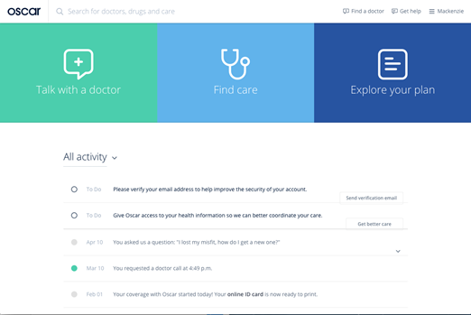 The platform provides the member personalized charts and health care data to allow for higher quality care decisions. Oscar currently supports members in New York state and New Jersey, with plans to expand to other states.