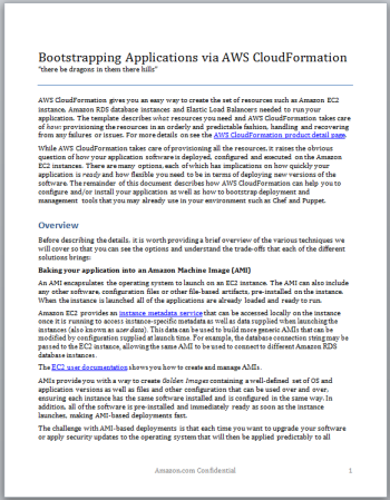 We have added two new sections to the existing documentation. Check out the Getting Started Walkthrough and learn about the Template Basics. We have also updated the AWS CloudFormation User Guide with new sections on getting started and on learning the basics of using templates.