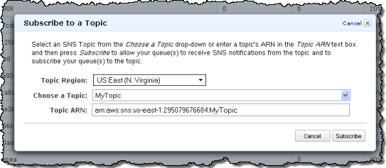 Today we are making it easier for you to implement the fanout pattern using a combination of SNS and SQS by giving you the ability to subscribe SQS queues to SNS topics via the AWS Management Console! There’s a new menu item in the SQS page of the console: