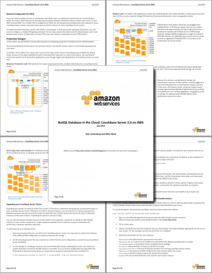 Written by AWS Solution Architects Kyle Lichtenberg and Miles Ward, this detailed white paper contains everything you’ll need to know to design, setup, monitor, and maintain your Couchbase installation. You will learn how to design for performance, durability, and scalabilty, and how to choose the right EC2 instance types and EBS volume settings. The paper includes a detailed discussion of Couchbase’s Cross Datacenter Replication (XDCR) and shows you how to use it for disaster recovery and geographic replication.