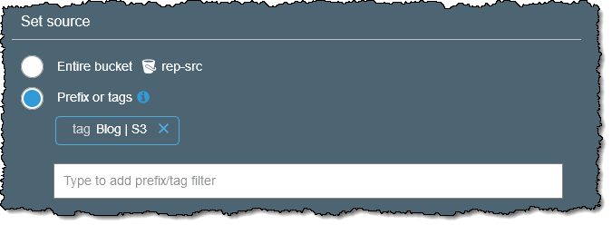 Replication is very easy to set up, and lets you use rules to specify that you want to copy objects from one S3 bucket to another one. The rules can specify replication of the entire bucket, or of a subset based on prefix or tag: