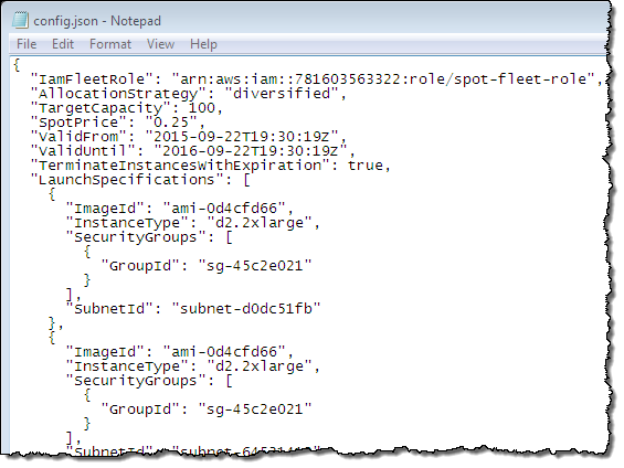 We are also adding support for the creation of Spot fleets via a CloudFormation template. Here’s a sample: