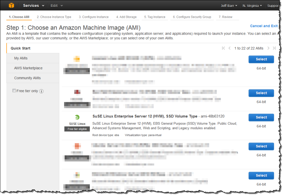 The new AMIs are available now in all AWS Regions and you can start using them today! You can launch them from the Quick Start tab in the AWS Management Console: